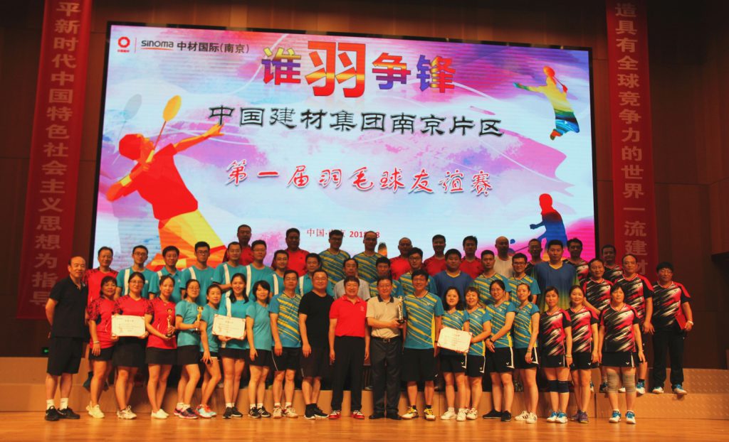 為響應集團號召,豐富職工業余文化生活,加強集團在寧企業之間交流,增進相互了解,中材國際(南京)承辦了中國建材集團南京片區第一屆羽毛球友誼賽,南京片區九家公司全部踴躍參賽,集團工會王于猛主席應邀前來觀戰,比賽氣氛十分熱烈。